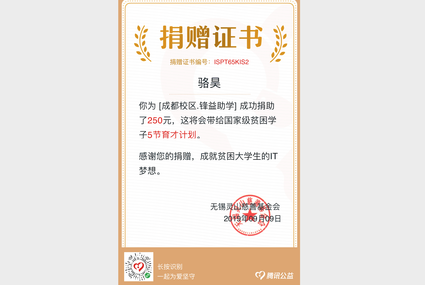 将微信打赏所得收入通过腾讯公益捐赠给国家级贫困大学生。