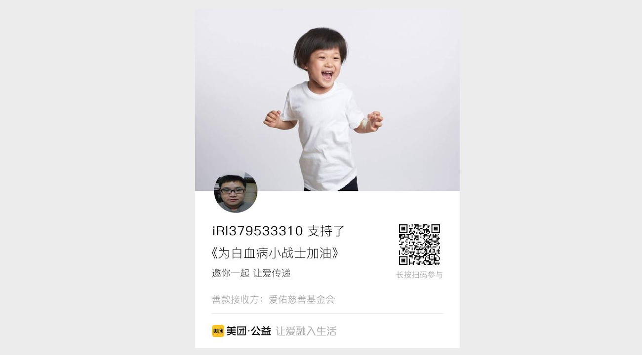 近期收到的打赏通过美团公益捐赠给有需要的人。