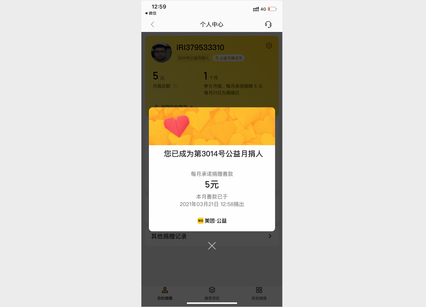 通过美团公益将近期打赏捐助给受疫情影响儿童。