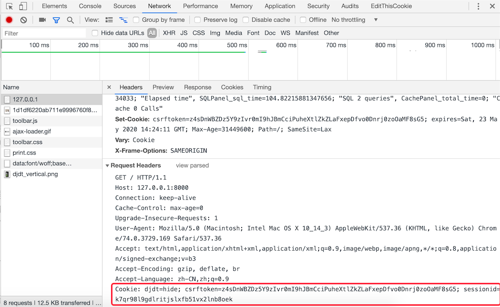 COOKIES属性 - 该属性包含了HTTP请求携带的所有cookie。get_signed_cookie方法 - 获取带签名的cookie,如果签名验证失败,会产生BadSignature异常。