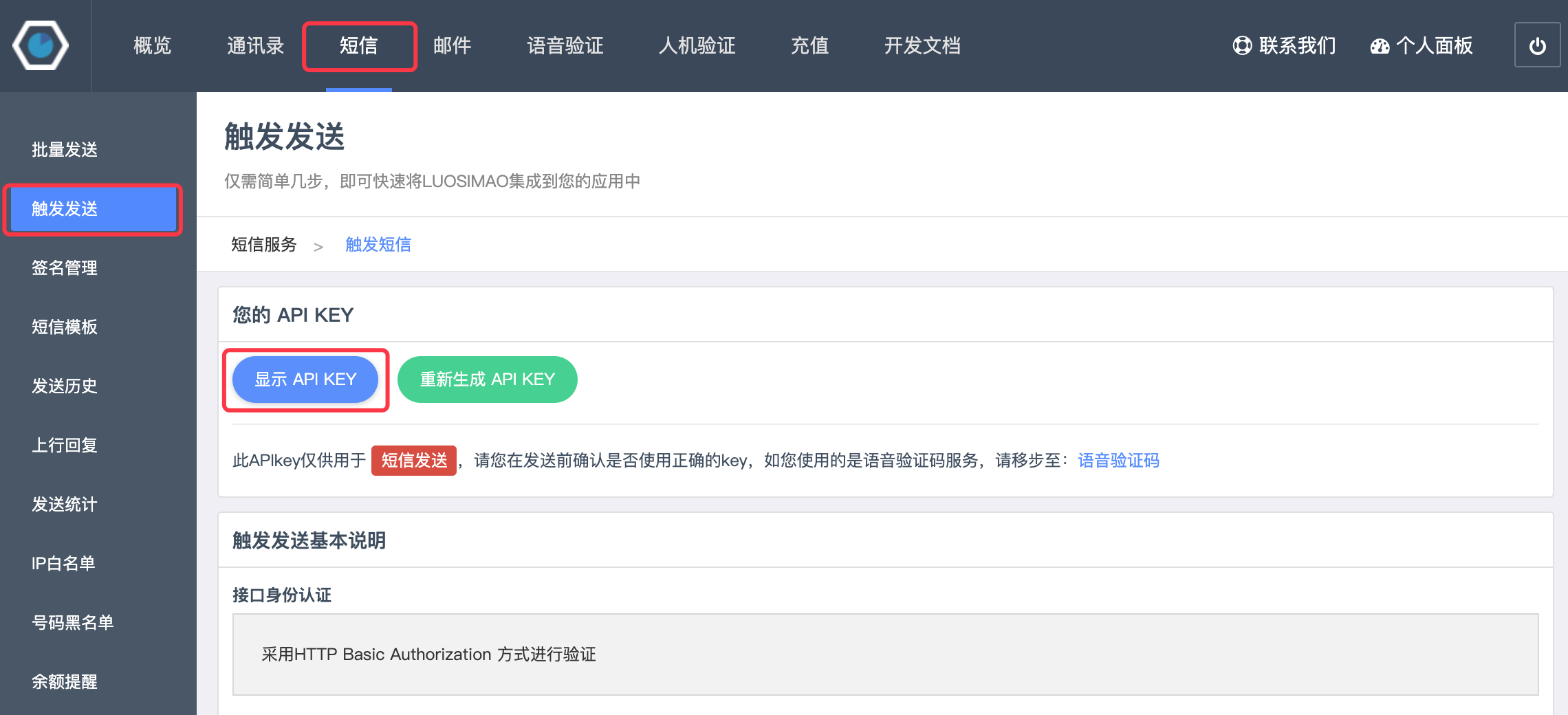 点击“触发发送”可以找到自己专属的API Key(身份标识)。