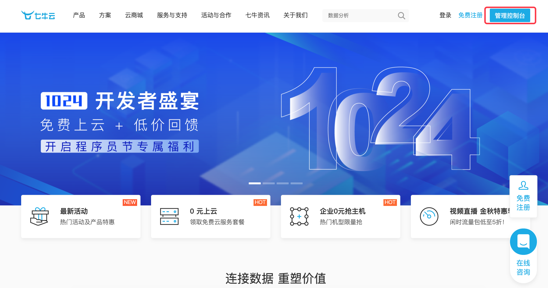 下面我们以接入七牛云为例,讲解如何实现将用户上传的文件保存到七牛云存储。七牛云是国内知名的云计算及数据服务提供商,七牛云在海量文件存储、CDN、视频点播、互动直播以及大规模异构数据的智能分析与处理等领域都有自己的产品,而且非付费用户也可以免费接入,使用其提供的服务。下面是接入七牛云的流程: