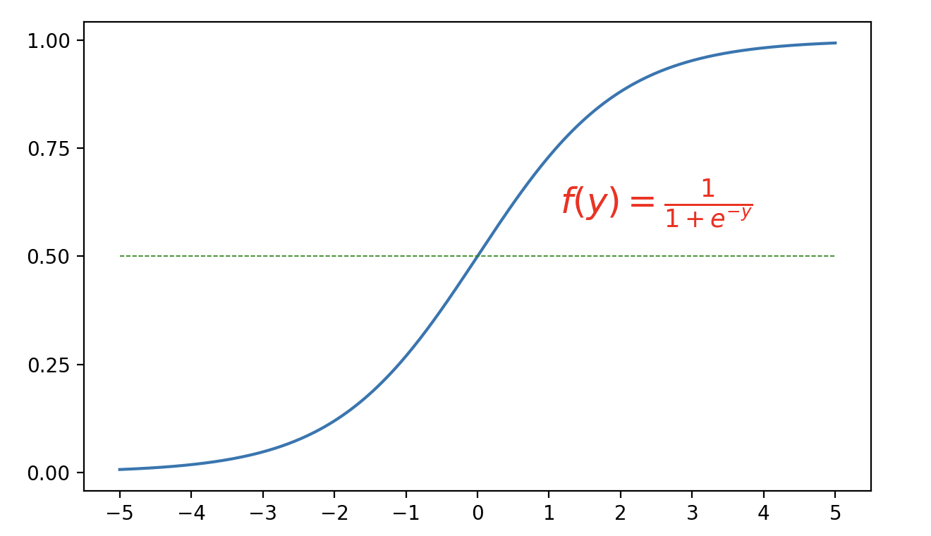 P(y=1 \vert x) = \frac{1}{1 + e^{-(\beta_{0} + \beta_{1} x_{1} + \cdots + \beta_{n} x_{n})}}
